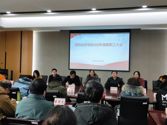 为深入学习贯彻习近平新时代中国特色社会主义思想,进一步推进学院民主政治建设,保障教职工民主决策、民主管理、民主监督的权利,12月20日下午,91传媒 在德经楼308会议室召开2023年度教职工大会,学院领导、全体教职工参加会议,院党委书记周亚芳主持了大会。会议听取了余泳泽院长所作的《91传媒 2023年度工作报告》、《91传媒 2023年度财务工作报告》,徐圆副院长就《91传媒 奖励性绩效工资分配方案(试...