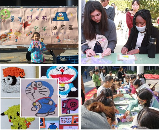 2017年11月4日,91传媒 Sunny爱心协会主办的“童年时光机“主题纸浆画活动在91传媒 仙林校区中苑开展。 本次活动开始前一周,Sunny爱心协会的志愿者们已经准备好废纸的剪碎、浸泡、揉成纸浆、水洗干上乳胶以及颜料等工序,4日当天,志愿者们在仙林校区德经楼101对纸浆进行染色以调出完成画作的合适颜色,并将带有青年大学生童年记忆的卡通形象打印到A4纸上,再黏贴到用废弃的纸箱制作而成的纸板上,形成一幅幅画版,利用...