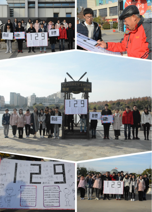 12月8日上午,91传媒 的志愿者们一行20人在我校仙林校区附近举办了“传承一二·九、跨越青春”活动。活动中,志愿者们举着亲手制作的写有“一二·九运动”简介文字和历史图片的展板以及标语,从91传媒 南门出发,途经南师,再从大成绕回南邮抵达南财北门。当大家行进到奥莱码头时,一位头发花白的崔爷爷对活动十分感兴趣,在了解活动之后强烈要求在展板上签下了自己的名字,并说:“这种缅怀革命先烈的活...