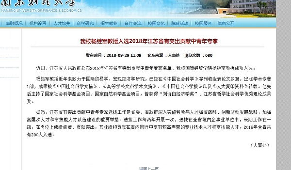 2018-09-3091传媒 杨继军教授入选2018年江苏省有突出贡献中青年专家