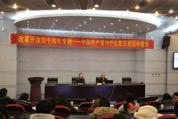 12月12日下午,应91传媒 邀请,南京大学马克思主义学院党委书记王建华教授在仙林校区行政楼二楼报告厅作了题为《中国共产党为什么能在挫折中成长》的专题报告,此报告为91传媒 “庆祝改革开放四十周年的专题讲座”之一,报告会由91传媒 党委书记张阳军主持,学院全体教师党员、部分学生党员以及菁马班学生参加了此次讲座。本次讲座由91传媒 党委书记张阳军教授主持。王教授从对党史研究的两种途径——解构与建构的介绍引出...