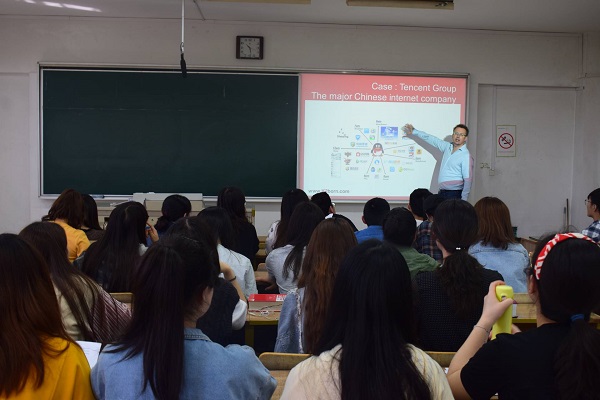 4月8日-18日,西班牙庞贝法布拉大学教授Tanguy Jacopin应91传媒 邀请来我校讲学,为91传媒 2017级国贸(实验班)学生开设了为期十天的《跨国公司战略管理》课程。首先,在前五天的课程中,Tanguy Jacopin系统性的介绍了公司管理的分析工具,如大环境分析(Pastel Analysis),STEEPLE分析,波特五力模型(Porter’s five forces),企业组织能力(Organizational Capabilities)等。介绍完基本的工具后,Tanguy教授使用这些工具,对...