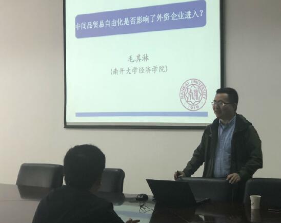 邀请,南开大学经济学院毛其淋副教授在我校仙林校区经济学科楼308会议室作了题为“中间品贸易自由化是否影响了外资企业进入”的讲座,国贸学院部分老师和学生参加了此次讲座。