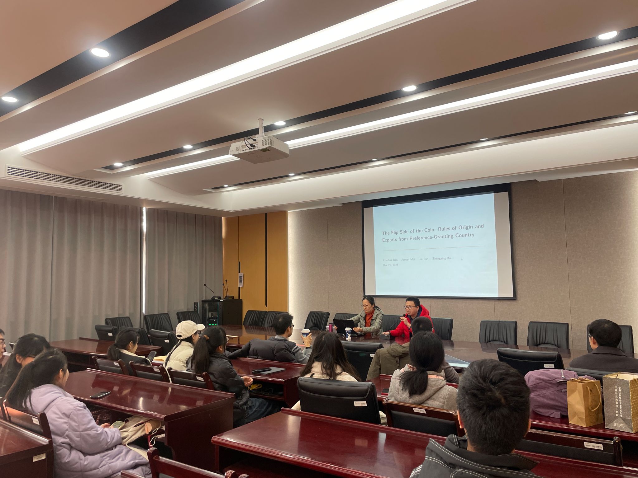 发表题为“The Flip Side of the Coin: Rules of Origin and Exports fromPreference-Granting Country”的学术报告。此次报告于德经楼308会议室举行,由陈启斐副院长主持,学院部分青年教师及硕、博研究生参与聆听。