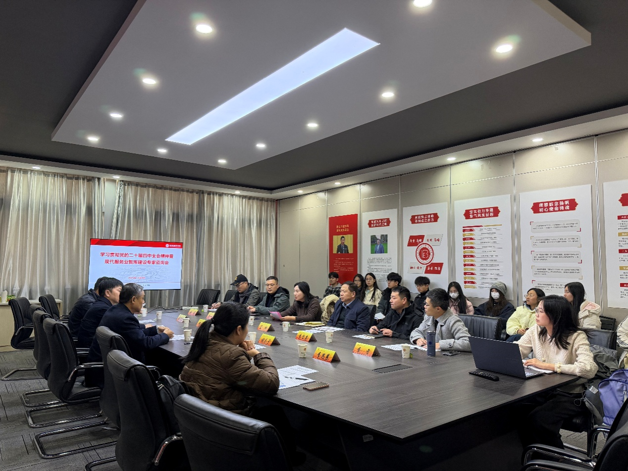 副院长徐圆教授主持,邀请南京师范大学资深教授蒋伏心、江苏省发展和改革委员会服务业处副处长、二级调研员褚志宇、南京大学中国(江苏)自由贸易试验区研究院院长韩剑、江苏省社科院研究员战炤磊、李思慧等省内外专家学者,以及学校相关学院与智库骨干共同参会,围绕党的二十届四中全会精神贯彻落实、现代服务业高质量发展与智库建设等核心议题展开深入交流。