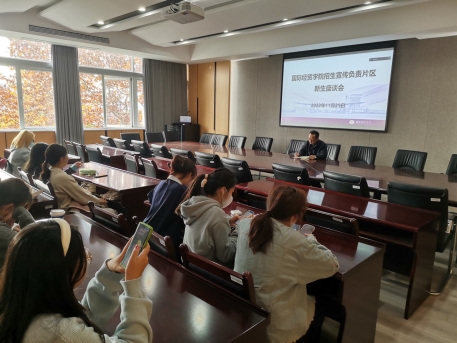 于2022年11月25日中午召开了招生宣传负责片区新生座谈会,学院党委书记张阳军、副书记季霞、新生代表、老生招生志愿者参加了此次座谈会。