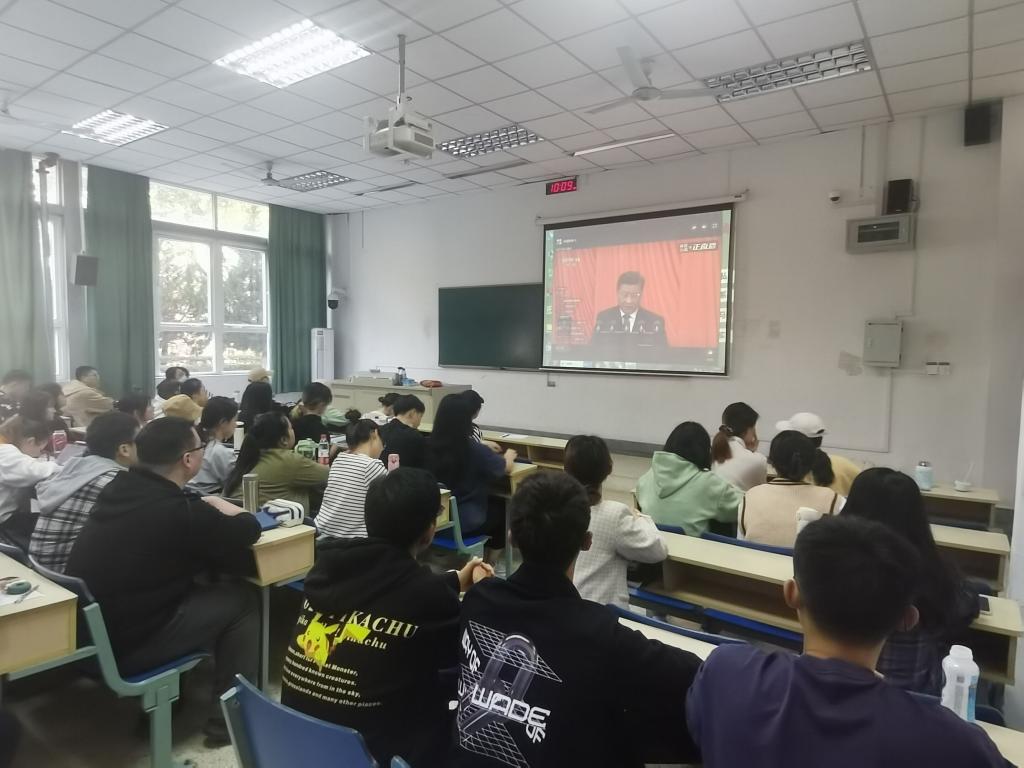 组织师生在德经楼110教室,集体收看党的二十大开幕会。