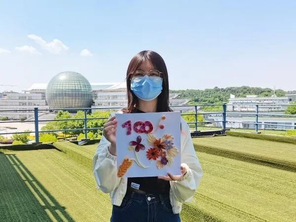 除朗诵外,同学们还以一种特别的方式向共青团表达祝福。贸经2101班的吕亦诗同学用了10余种颜色的衍纸,通过卷捏粘拼,组成了一幅精美的装饰画。鲜红的数字“100”蕴含着中国共青团走过的百年征程,各色各样的花朵则表达了她对共青团美好未来的祝愿,而麦穗寓意着广大青年要站稳人民立场,脚踏实地,求真务实。她说:“为了使整个画面看起来协调美观,我进行了多次调整,希望能献给中国共青团一份饱含心意的礼物,也祝愿新时代的青年前赴后继、砥砺奋进,传递青春正能量!”