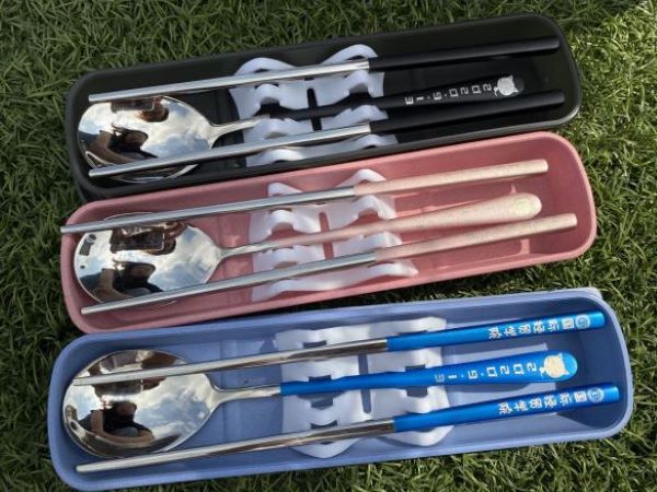 一进德经楼三楼草坪,视线立刻被一个可爱的房子吸引住,房子的左上角有三个框,新生们可以拼出自己宿舍号,并和舍友们一起在门前留下第一张小家的合影。这个特殊的小家拍照墙原来是商务1902班的吴雪同学专门为萌新们手绘设计的,她希望国贸院的小萌新们在陌生的环境依旧可以有“家”的感觉。为了争做“最‘赞’国小猫”,新生们拿着手机与“新家”竞相“三连”,一副势必将光盘新食尚、智慧收纳册、蓝色保护罩等礼物纳入囊中的架势。其中最受萌新喜爱的当属“光盘新食尚”。它是一份由91传媒 学生设计并定制的餐具,“国小猫喊你吃饭啦”“光盘行动,有你有我”等可爱字样赫然印刻在餐具盒上,新生开学日期“2020.9.13”和国贸院的吉祥物国小猫也出现在铁质筷子和勺子上。