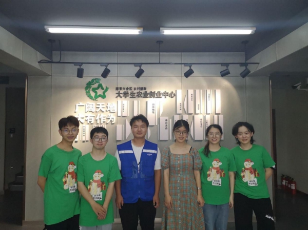 “e起带农货”小队五人前往六合雄州钱仓社区进行走访调研,深入探访了六合区乡村振兴大学生农业创业中心。