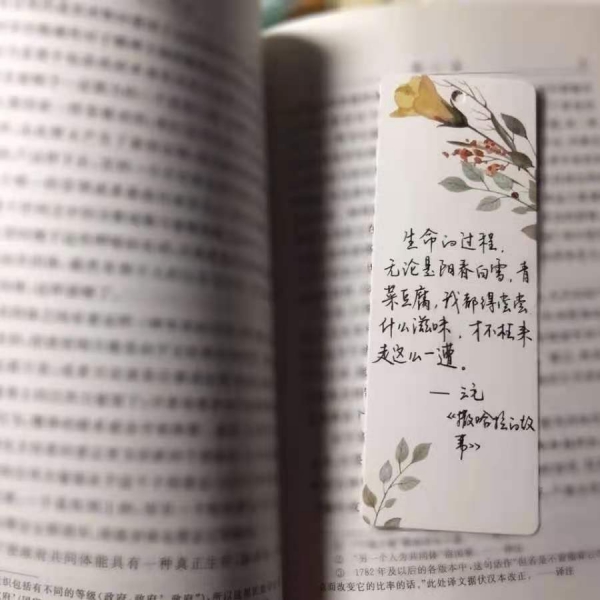 阅读分享结束后,大家开始制作书签,有的同学在书签上写下自己从书中人物身上学到的品质,比如“智慧、儒雅、纯洁、仁义正直、脚踏实地”等等,还有的同学在书签上摘录下书中出现的经典佳句。
