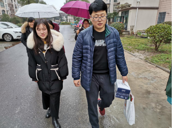 分党委副书记季霞、学工秘书朱娟芳、2019级至2016级辅导员一行6人不惧风雨、不畏严寒前往高邮市和仪征市开展“寒假家访”活动,通过走访困难学生和宣传国家和学校资助政策,送去学院的温暖和关怀。