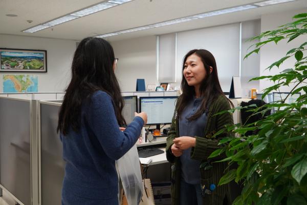 (蔡洁老师与国际交流处崔仙英老师进行友好交流)
