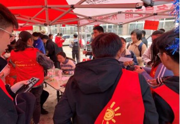 活动开始前一周,Sunny爱心协会的成员们就陆续在QQ、微信、微博这三大平台发布了中苑外场活动预告,积极转发宣传,为活动积攒了大量人气。18日当天的主题活动包括“迈向光明”—体验盲人走路、“心领神会”—体验聋哑人表达、“假如我做母亲”—体验孕妇走路、“地球上的星星”—自闭症相关知识问答四个现场环节,完成四个环节即可参与抽奖。“迈向光明”环节体验者需要戴上眼罩,手持拐杖绕过前方的三个障碍物,通过这个环节,同学们体会到了盲人走路的不便和辛苦。“心领神会”环节体验者们不能出声,一切表达只能依靠手部动作来完成,同学们纷纷表示这个环节很难,体会到了聋哑人的不易。“假如我做母亲环节体验者们需戴上一个比较重的“肚子”,在不挤压到“孩子”的前提下,小心完成走路和弯腰捡瓶子的动作,同学们都直呼“太难了!”,切身体会到了孕妇不易的一小部分。“地球上的星星”环节体验者们参与自闭症知识问答,通过这种方式对自闭症有了更深入的认识。虽然当天天气较为寒冷,但依然无法抵挡同学们参与活动的热情。同学们积极参与、体验,现场热闹非常。
