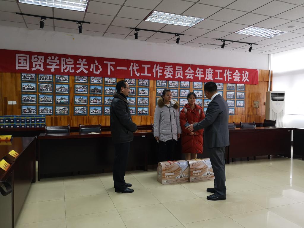 学生7名同学带来了校关工委的“爱心礼品”——蚕丝被以及“爱心捐款”。他鼓励同学们要将爱心传递,勤奋学习、积极向上,不断提高自身综合素质,努力增强为国家、为人民服务的本领 ,将来能够将关爱转化为立志成才、报效祖国、回报社会的强大动力,为国贸院争光,为伟大复兴的中国梦添砖加瓦。随后他介绍了全省关工委的工作动态以及我校关工委工作的特色,希望听取学生意见,在关工委工作常态化的基础上做到优质化,引导大学生成长成才。