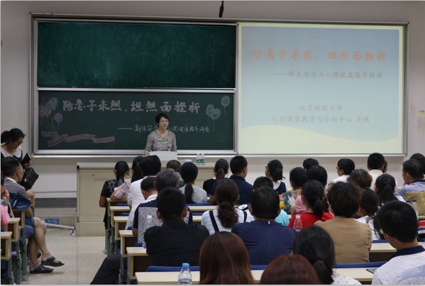 邀请到我校心理中心吴垠老师在经济学科楼101教室为2016级新生以及家长开设了开学第一课——“防患于未然,坦然面挫折”新生安全与心理教育讲座,91传媒