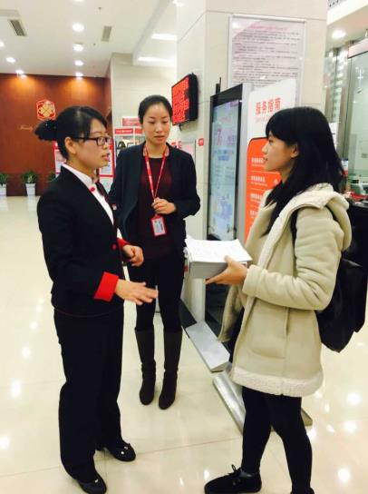 该行理财经理——我校10级校友陈方丽接待了参观学生,她向大家系统的介绍了中信银行的组成及各个部门。除了银行营业厅以外,她还带领各位同学参观了银行的公司部、财务部、休闲娱乐室、行长办公室以及未来之星俱乐部等等,参观之余,详尽的解释了银行内部各个岗位不同的职能分工而所需要的必备技能。随后,陈方丽详细的介绍了中信银行目前与百度的合作模式,指导各位学生下载中信银行的APP体验互联网+金融的最新成果,通过线上一键处理金融业务。