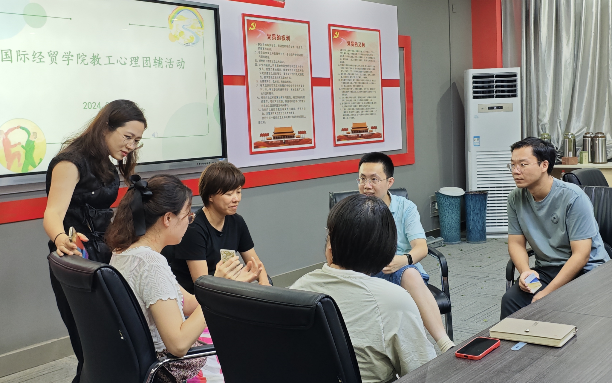 在德经楼206会议室为教工们组织了一场暖心有趣的心理团辅活动。活动以“OH卡牌——探索内心之旅”为主题,邀请心理健康教育中心李喆君老师全程辅导,赢得了教工们的积极参与。
