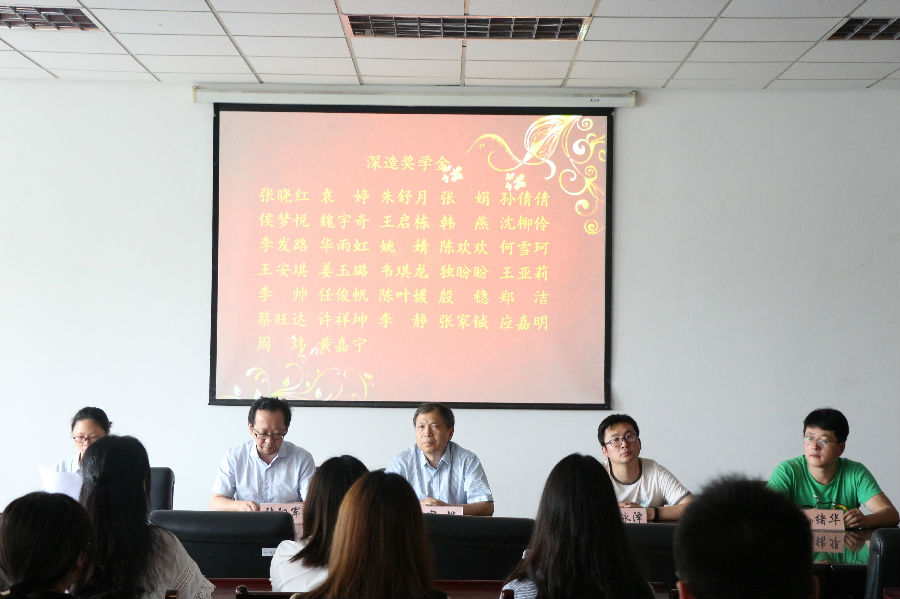 张阳军书记向在考研及学生工作中取得优异成绩的学生表示祝贺,希望获奖学生不忘初心,再接再厉,用不懈的努力铸就更好的明天,用更好的成绩成就青春的辉煌。随后,张阳军书记宣读了深造奖学金获奖名单、院长奖学金获奖名单。宣烨院长为获奖学生颁奖。