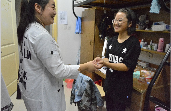中秋节晚上,91传媒 2016级辅导员张东霞老师和寻访月饼的学生一同走进新生宿舍,与新生们品月饼、聊军训话中秋。在看到老师和月饼时,张同学紧张地说,“真的很感谢老师和学姐学长们过来送月饼,冰皮月饼真的是好吃到哭,就和在家吃的感觉一样!”
