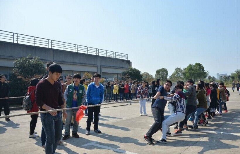 学生会社团部主办的“魅力班级”活动第一战——趣味运动会之拔河比赛成功举行,比赛现场气氛十分热烈,加油喊号声不绝,振奋人心。