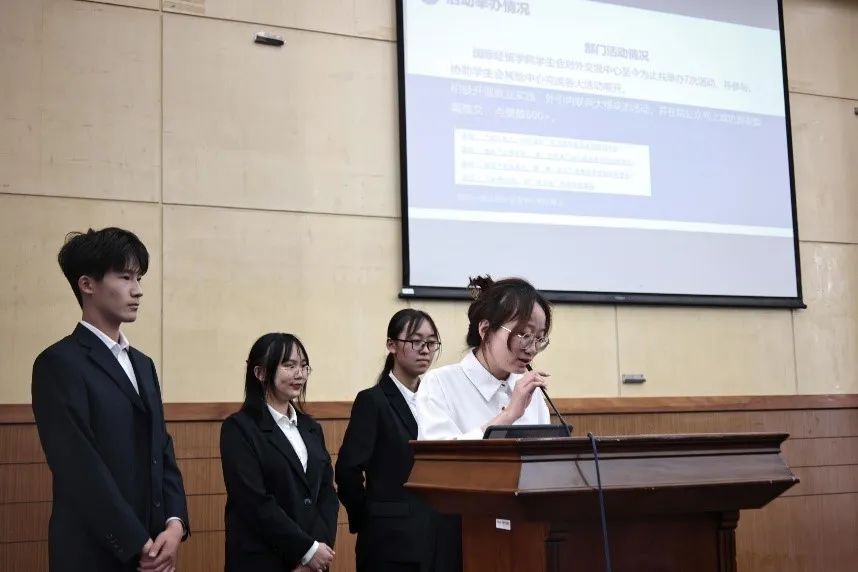 在短暂休息过后,学生会主席和分团委副书记候选人们依次进行了工作总结并答辩。评审团认真聆听,进行了相关提问并指出了他们工作中的不足,全方位的考察候选人的综合素质。候选人们则对问题进行了详细的回答,在他们的回答中包含了自己对学生会、分团委工作的独特认识与理解,也有对未来工作的展望与期待。