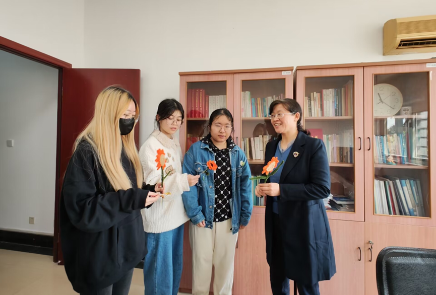 开展了“胸针别心口,鲜花赠予她”妇女节主题活动,希望通过制作胸针以及向日葵花束来表达对我校妇女同志们的美好祝福。