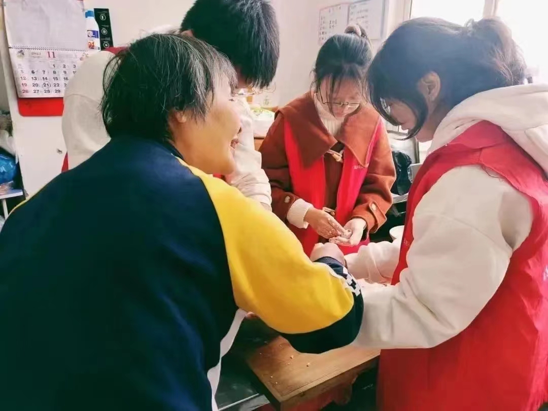 教室里,学员与志愿者一对一坐着,在志愿者的指导下,卡纸在学员手中像是被赋予了生命,不一会,千纸鹤、玫瑰花、小青蛙嫣然出现在桌上。学员们发亮的眼睛诉说着获取新知的欢愉。同时,志愿者和学员们的交谈极为惬意,既有叔叔辈的学员慷慨激昂的诉说曾经的点点滴滴,又有与志愿者年纪相仿的学员积极提问、学习,给这个冬天送来了别样的温暖安逸。志愿者张春香回忆:“这次活动让我收获良多,不仅让我更深入地了解了残障人士的生活,也让我有了合作与责任等方面能力的提升。我很高兴能为这些可爱的朋友们带去一点点的温暖和快乐。”