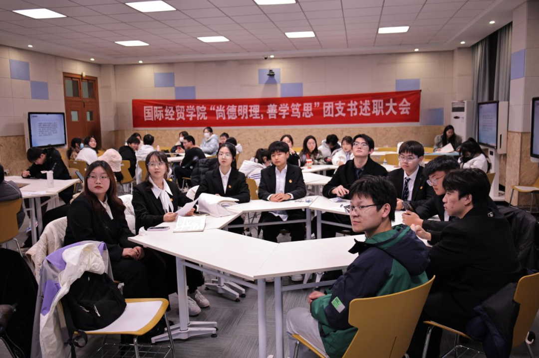 于博文楼101举办“尚德明理,善学笃思”23级团支书述职大会。学院分团委副书记于真真、李玉桐、刘洋,及部分学生代表出席本次会议。会议由王晓瑜同学主持。会议第一个议程,各团支部书记按顺序上台进行述职并答辩。各团支书总结了本学期包括智慧团建录入、PU信息录入、主题教育及党史学习等一系列活动的完成情况,调研搜集了团员评价和团员满意度,反思了工作中存在的不足,并对未来支部建设的规划进行汇报。答辩环节中,评委们对各团支书的述职情况进行了点评提问,明确指出汇报中存在的问题,同时也针对材料收集不及时、反馈问题不及时等问题提出了相应的建设性意见。