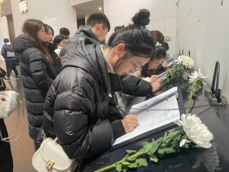 青马班学员们怀着哀思来到了祭场。献花台上火苗跳动,昭示着信仰之火不灭,一辈辈人将会继续砥砺前行,凝望着跃动的火苗,青马班学员们献出手上的白菊,对逝去的千千万万同胞进行沉痛的默哀,以此表达对遇难同胞的深切缅怀。