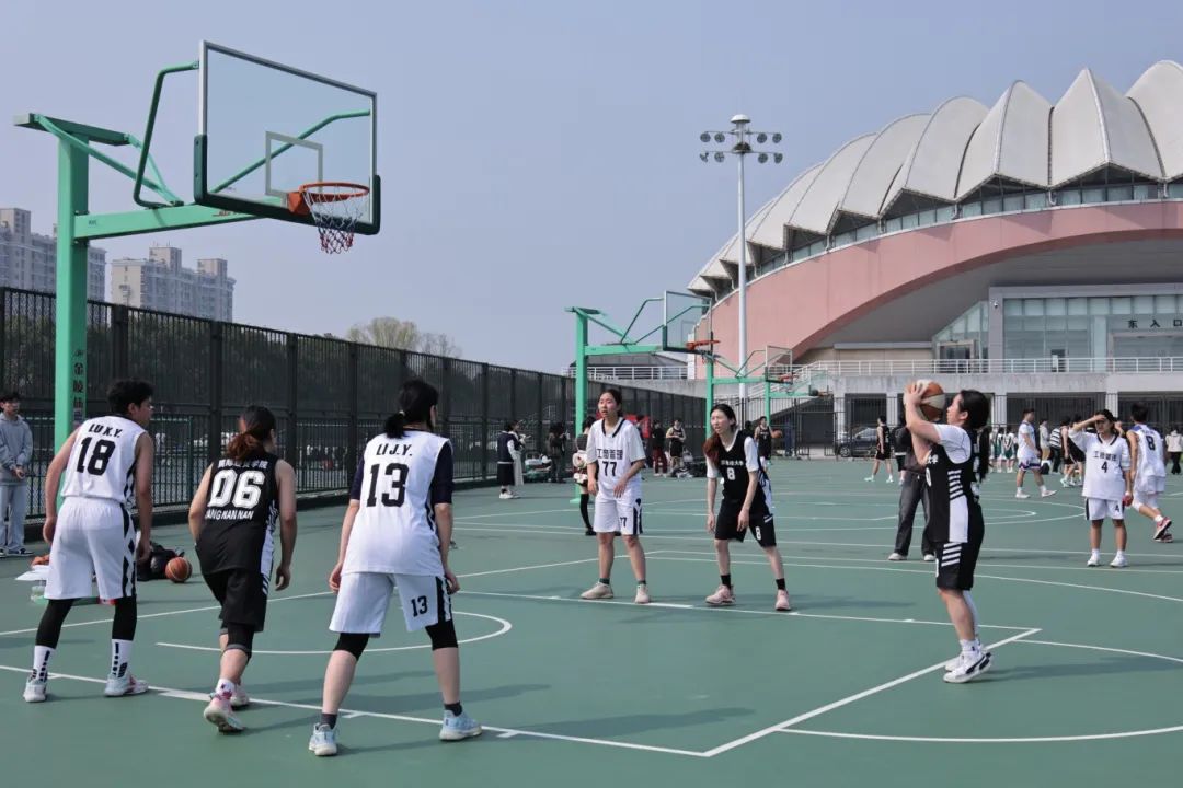 女篮与工商管理学院女篮展开了一场较量。比赛开始,我方6号球员发挥出色,首球得分,为球队赢得了开门红。对方18号球员也不甘示弱,上篮得分将比分扳平。随后双方你来我往互不相让,多次出手命中。中场休息后,双方易边再战。我方球员迅速进入状态,率先得分。即使是陷入了得分荒也不断寻求着得分机会,我方获得一次罚球机会并顺利得分,将比分锁定为11:6取得胜利,这场比赛的胜利也意味着女篮成功锁定了八强赛。