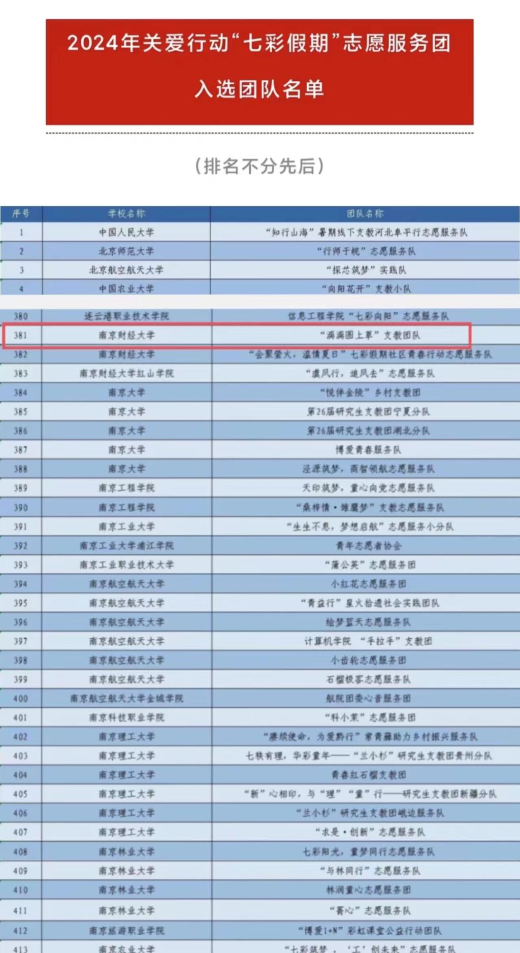 主办单位对所有材料进行了认真审阅,最终共有来自南京大学、华中科技大学等1142所高校的2000支大学生志愿服务团队入选。91传媒