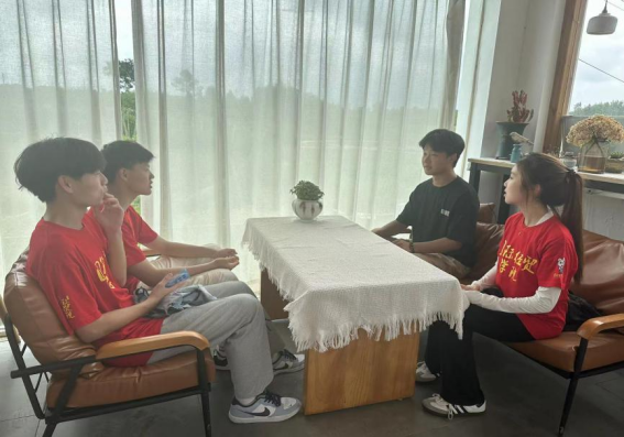 图为团队成员与当地基地负责人交流乡村经济发展新模式。赵珺摄