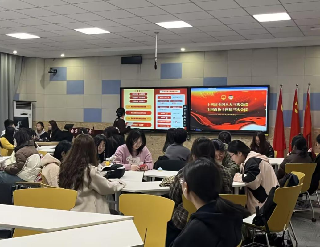 在博文楼101举办“大学青年说,两会新声代”两会精神专题学习活动。通过政策研读、主题研讨、知识竞赛等形式,引导国贸学子深入学习两会精神,推动专业学习与国家发展同频共振。