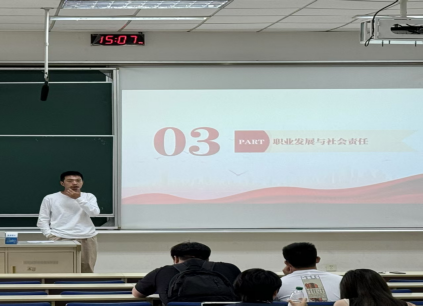 孙进老师立足大三关键节点,聚焦“未来之路如何走”这一核心关切,为同学们带来深度职业发展导航。他细致拆解了考研、就业、留学等多条路径的核心要点与时间规划,尤其针对考研这一重要方向,进行了“精准滴灌”式指导:从院校专业选择的策略分析、复习备考的阶段性任务分解,到心态调整的实用方法,孙老师均结合历届学生的案例和自身考研经历给同学们展示出了清晰可循的路线图,帮助同学们拨开迷雾,锚定目标,为未来冲刺积蓄力量。