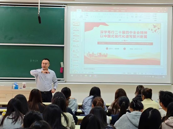 图为徐梓彦老师围绕党的二十届四中全会精神开展专题讲解