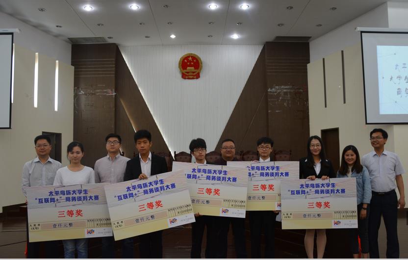 主办的“太平鸟杯”大学生“互联网+”商务谈判大赛决赛在法政学科楼报告厅举行。本次大赛邀请到中共射阳县委组织部人才办副主任、江苏省射阳县海河镇镇长丁强、太平鸟公司人资中心负责人金丹妍、良言录社群创始人孙宁、江苏中企教育科技股份有限公司总经理姚俊,91传媒