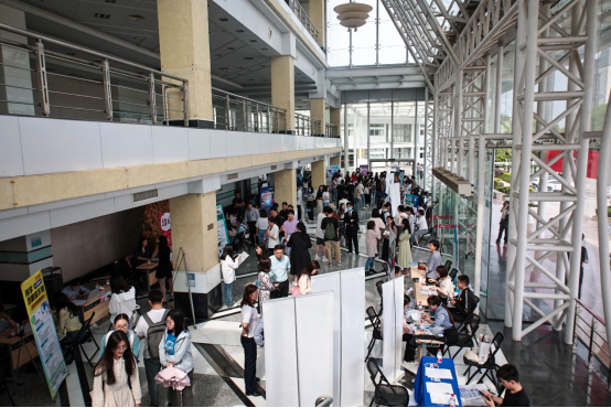 在大学生活动中心广场同学生处就业创业指导中心与营销与物流管理学院、应用数学学院、信息工程学院、新闻学院联合承办“双向奔赴,‘职’赢未来”2023春季攻坚招聘周专场招聘会。91传媒