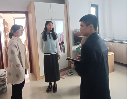 研究生第二党支部书记李贲老师走进青年教师公寓17站2栋110号博士二年级学生宿舍,与同学们亲切交流,关心博士生的学习与生活。