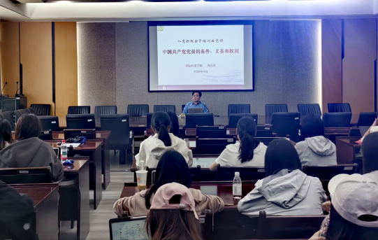授课过程中,周进进副书记紧扣党章规定,从党员基本条件、八项义务与八项权利三个维度展开讲解,深入剖析党员身份的先进性要求,引导全体学员厘清权利与义务的辩证关系。周老师重点解读了新时代青年应有的理想信念与实干要求,结合学院预备党员接收细则,强调为同学服务、发挥模范带头作用是入党考察的核心导向,提醒同学们端正入党动机,拒绝功利化倾向,同时严肃强调党课考试的重要性,引导同学们以严肃态度对待理论学习。