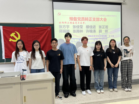 经大会讨论、投票,支部大会到会19名正式党员一致同意张方宇、张佳莹、楼佳进、张芷若、蒋瑞琳、张雨林、许锦涛、蔚祥8名同志按期转为中共正式党员。