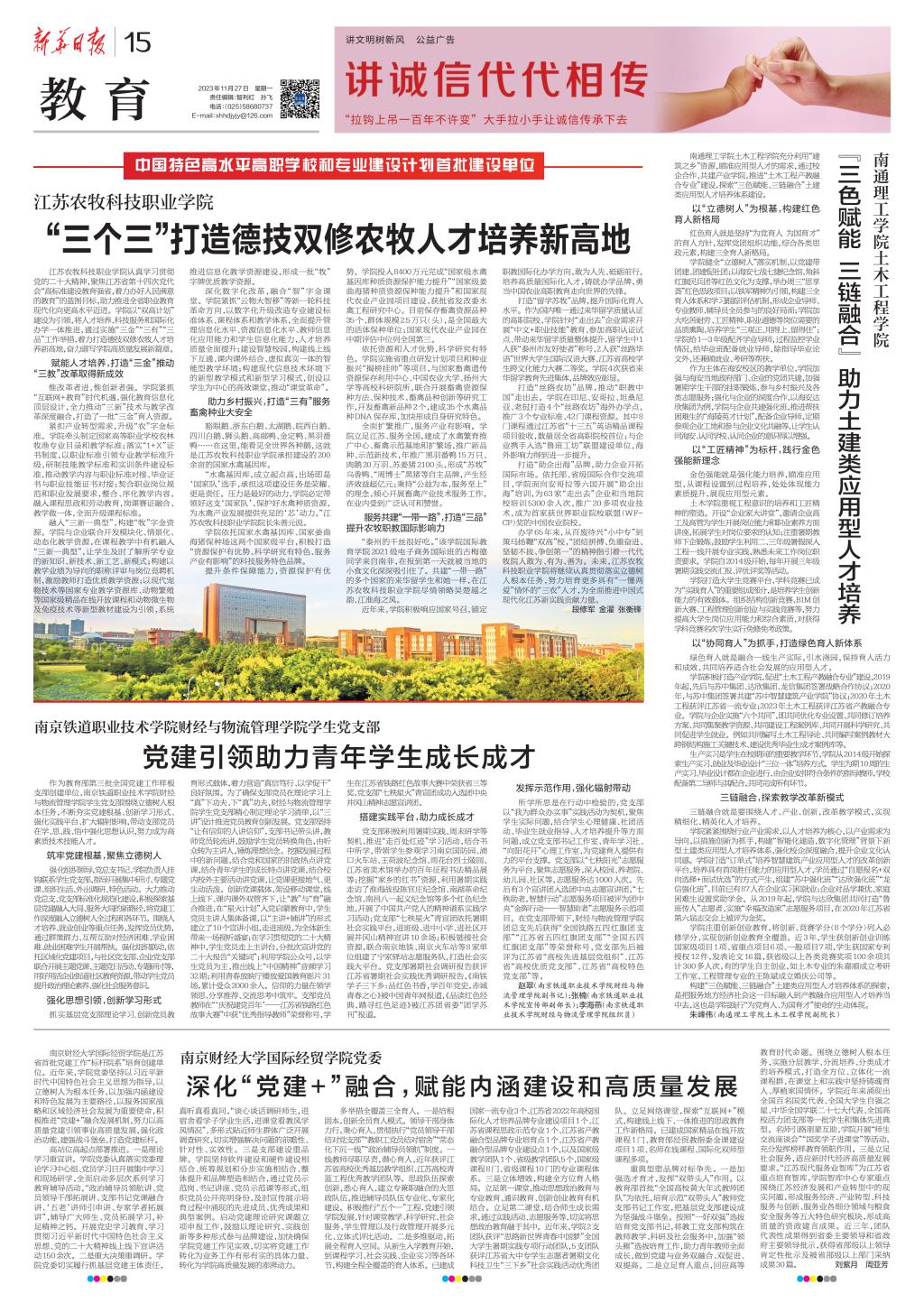 【新华日报2023.11.27教育版】91传媒 党委:深化“党建+”融合,赋能内涵建设和高质量发展