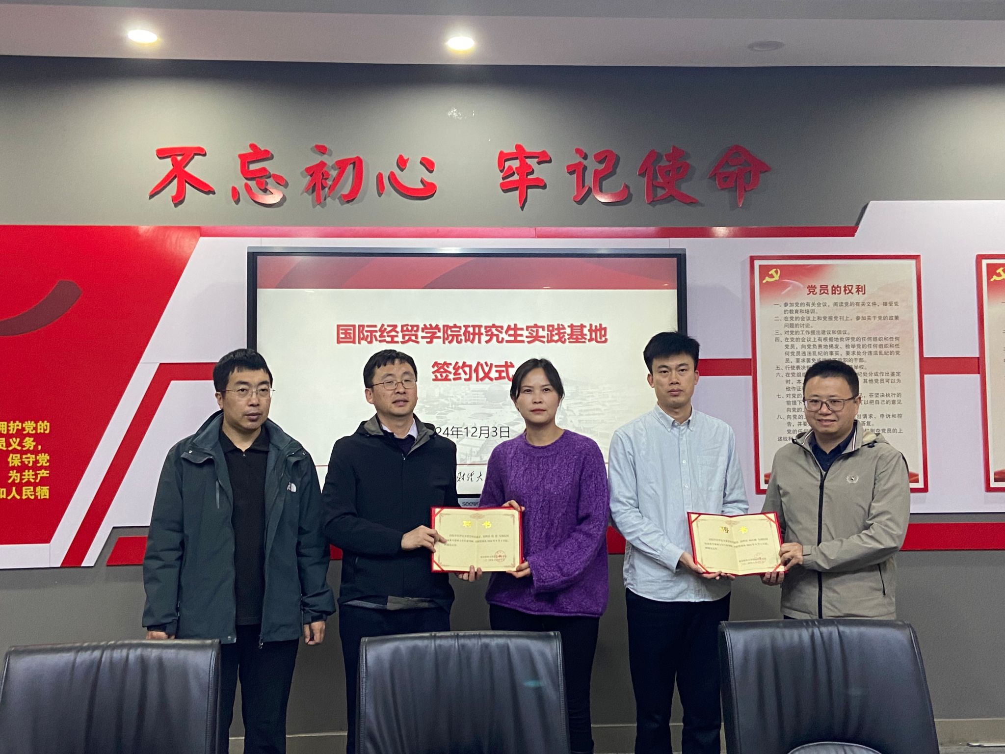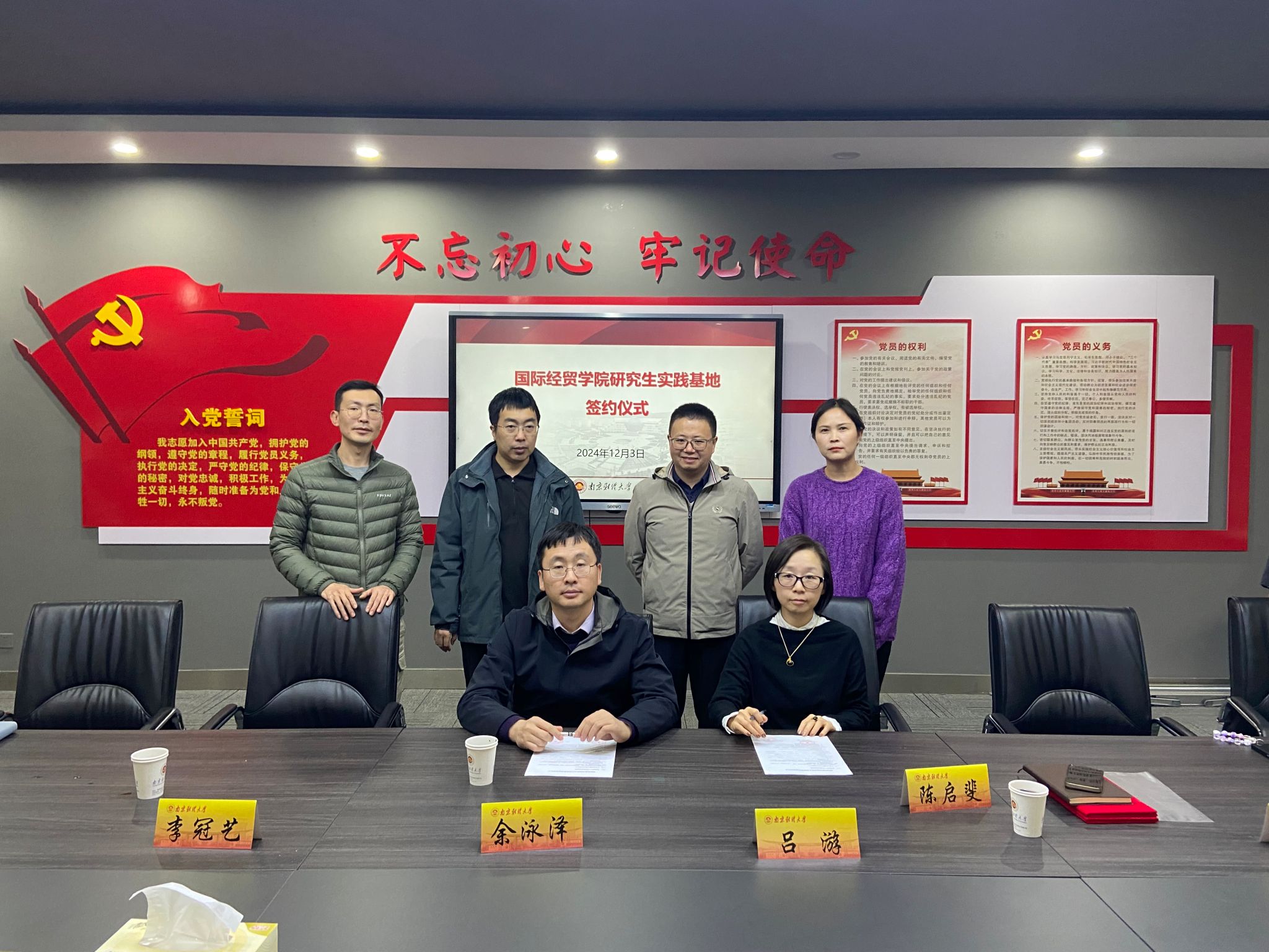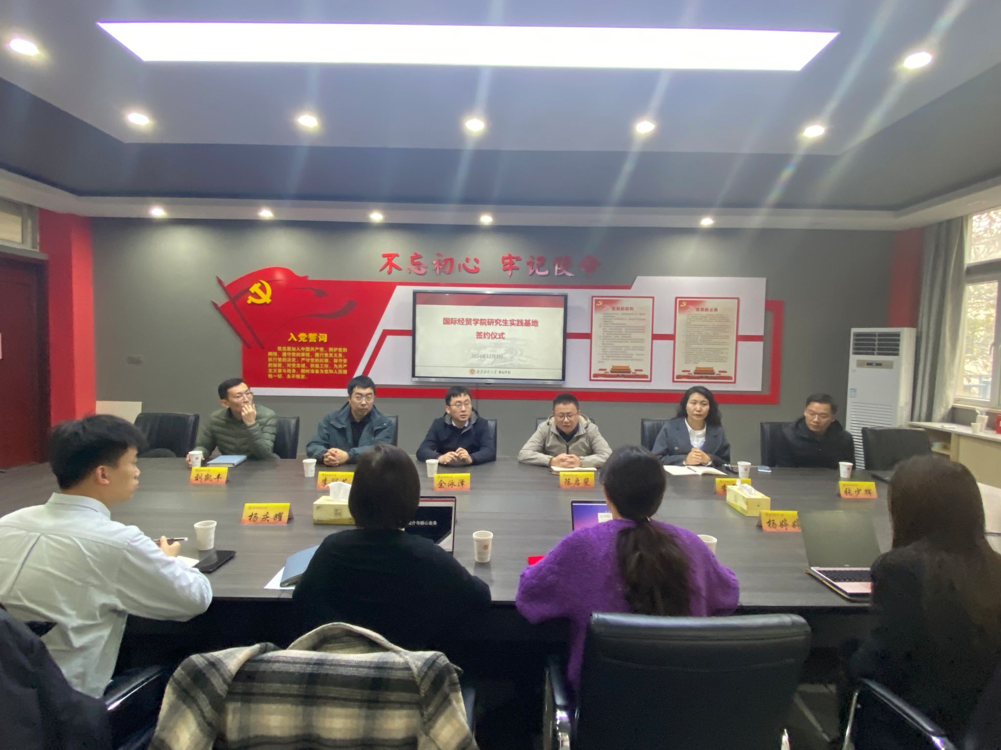 与江苏未迟数字技术有限公司在德经楼206会议室举行了研究生实践基地签约仪式。余泳泽院长、陈启斐副院长、李冠艺副院长、学科骨干教师李平华、刘凯丰和张少辉出席了此次签约仪式。余泳泽院长对江苏未迟数字技术有限公司的四位领导莅临91传媒